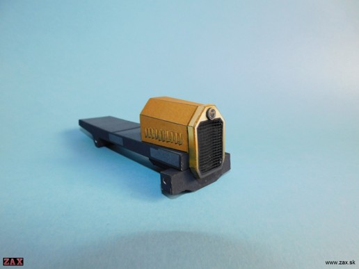 Zatiaľ mám zlepený podvozok a prednú kapotu. Úpravy-prerezané otvory na kapote, do chladiča pridaná sieťka a zvýraznený znak.