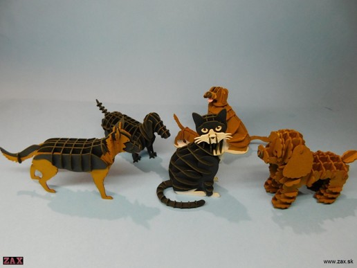Ďalšie 3D puzzle, tentokrát ku psom pribudla mačka. Skladá sa z 55 častí, a skladalo sa to dobre a výsledok je celkom pekný, ktorý sa podobá na predlohu, pár fotiek: