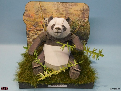 Panda sa lepila vcelku dobre, trochu komplikovanejšie bolo lepenie zadných nôh a pripojenie celku ku telu... Dorobil som podložku, ako doplnok som použil statickú trávu...niekoľko fotografií: